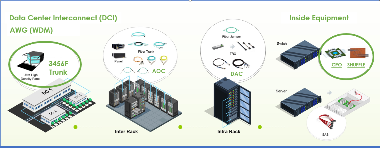 Center Interconnect (DCI), to connectivity of Inter Rack and Intra Rack, even the optics inside